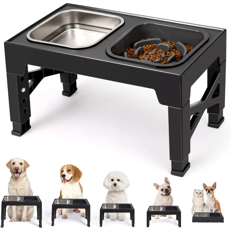 5-in-1 Adjustable Dog Food Bowl - Raised Feeder from 3.15" to 12.2" for Small to Large Dogs, Includes Slow Feed Insert