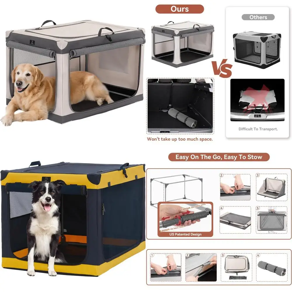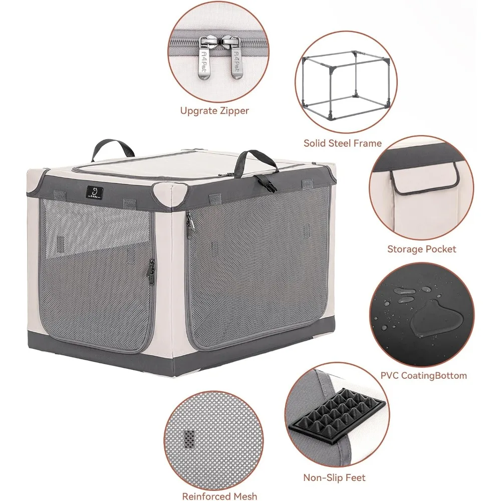 - Enhanced Comfort and Practical Features: The portable dog crate is equipped with mesh windows on 3 sides for optimal ventilation and visibility, ensuring your pet stays comfortable. A convenient storage pocket is included for keeping pet essentials like treats and toys.