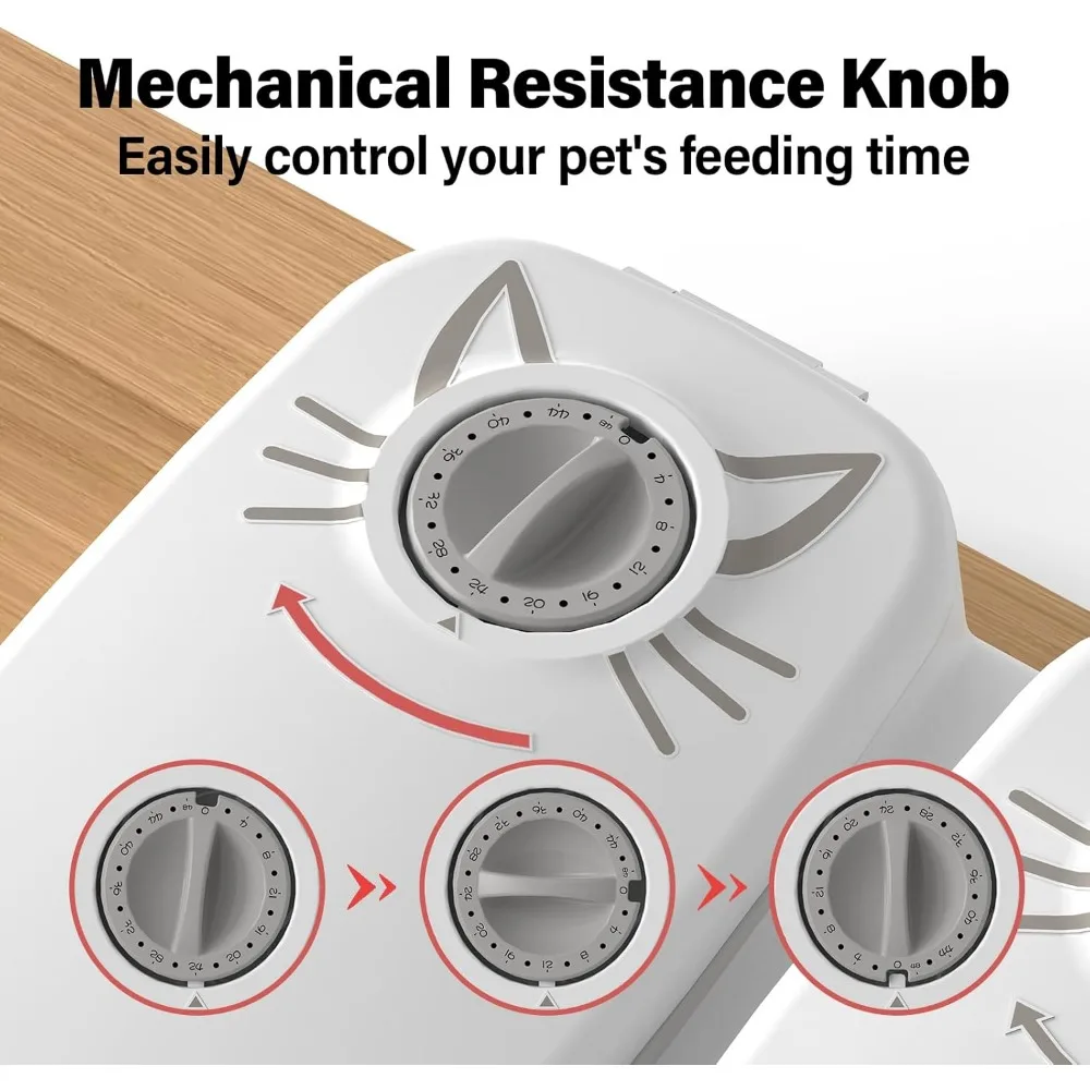 - Easy to Use & Portable Life: The automatic cat feeder is not a clock but a countdown timer, you just dial the number of hours until you want it to turn on.Make it easy for you to enjoy 48 hours of traveling, working. Keep your puppy from disturbing your beauty sleep in the wee hours of the morning and get to eat the beautiful food you prepared for him on time