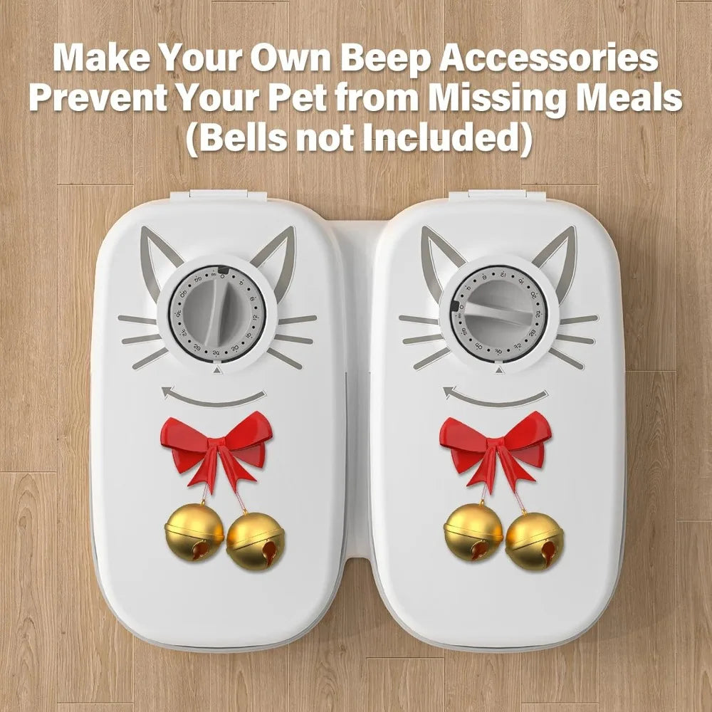 Automatic 2-Meal Cat Feeder - 48H Timed Wet Cat Food Refrigerated Dispenser with 2 Ice Packs for Puppies and Kittens in Yogurt a