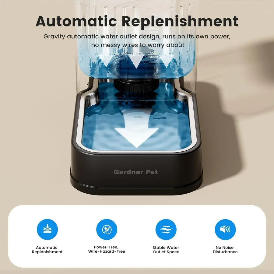 Silent, Spill-Proof Design - Gravity water feeder is Motor-free operation ensures silent water dispensing. Anti-tip square base stays steady during play, while advanced filtration keeps water fresh.