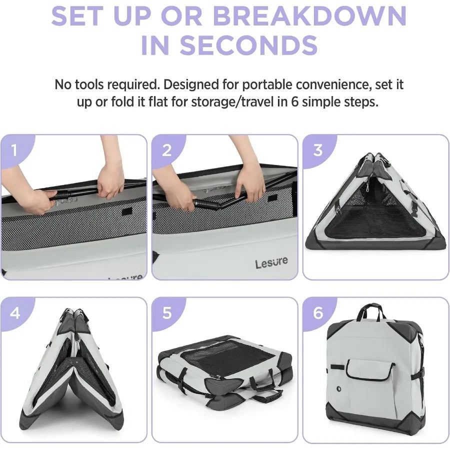 Lesure Collapsible Dog Crate Portable Travel Kennel for Extra Large Dogs with 4Door Design and Mesh Windows Ideal for Indoor an