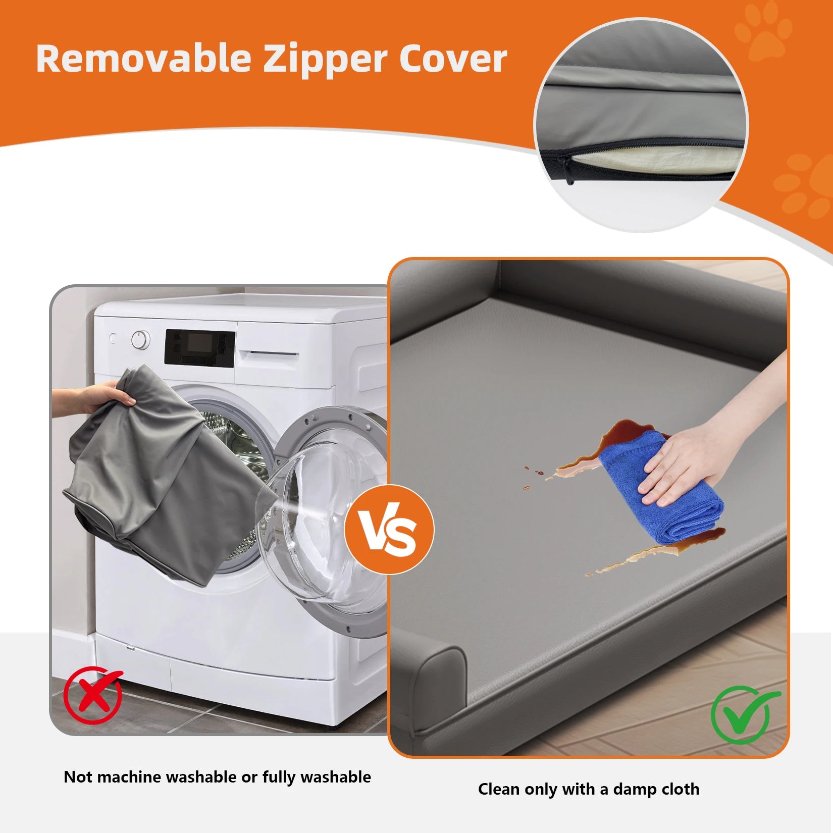 Scratch-Resistant & Easy to Clean: The bed cover is made from premium microfiber silicone leather, the same durable and stylish material often used in modern furniture like sofas and dining chairs, this leather dog bed is not only resistant to pet scratches and wear, but also extremely easy to maintain, pet hair, dust, and spills can be quickly wiped off with a damp cloth, no zipper removal or machine cleaning needed, a perfect choice for busy pet owners who want style and practicality