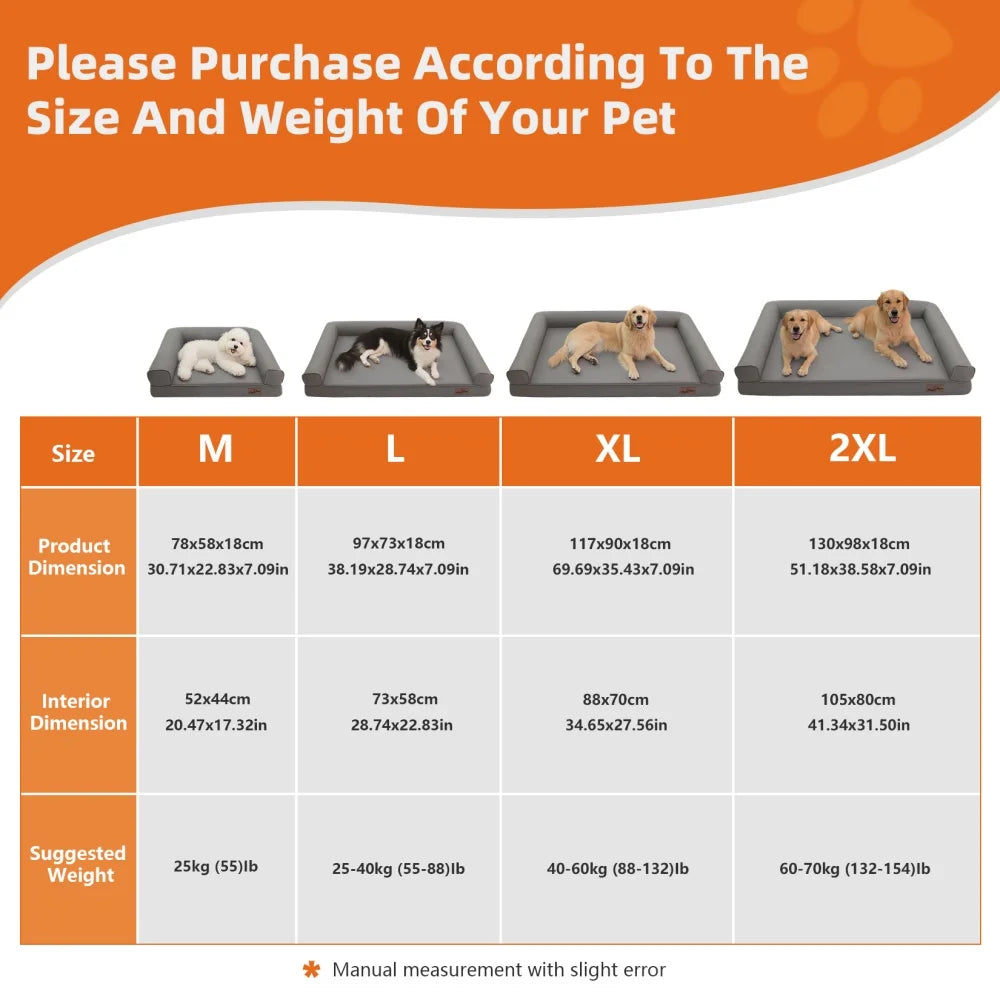8cm Thick Orthopedic Foam: Unlike beds with thin padding, this dog couch for large sized dogs uses a 8cm thick, high-density orthopedic foam slab, not shredded or layered fill, it offers full-body support, effectively relieving pressure on hips, elbows, and joints, which is essential for senior dogs or large breeds, the structure prevents pets from sinking to the floor and helps maintain spinal alignment during sleep