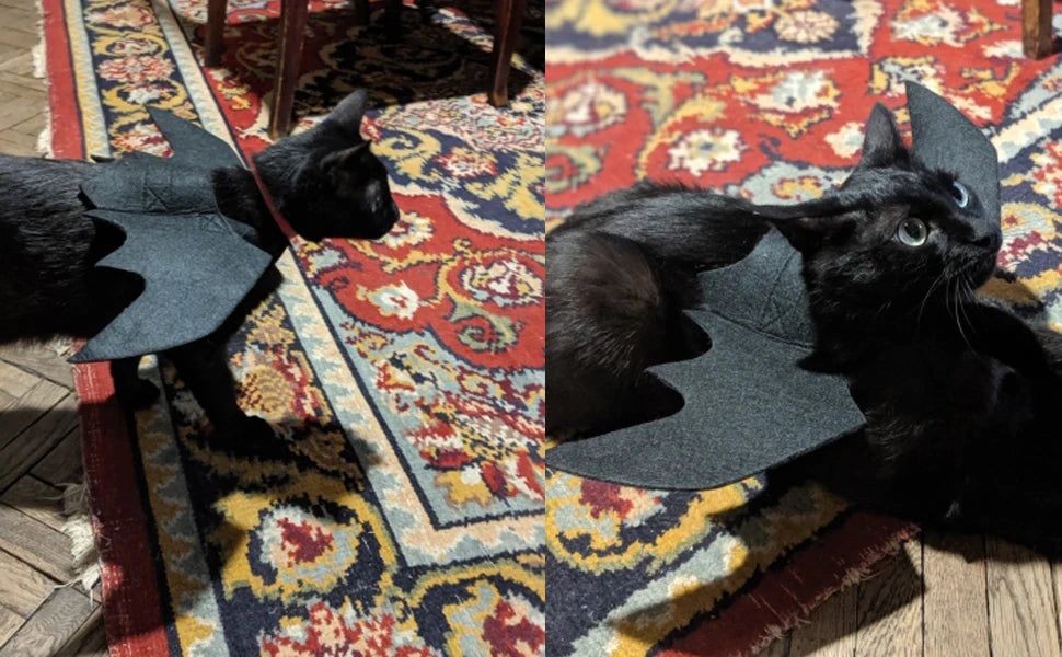 When it’s your pooch or a kitty wearing this bat black devil wings made of black felt cloth, which is lightweight and has no bondage on the cat. The funny pet costume is perfect for daily wear and special occasion, such as Halloween, theme parties, Christmas, Birthdays, Parades or Photo Shoot.