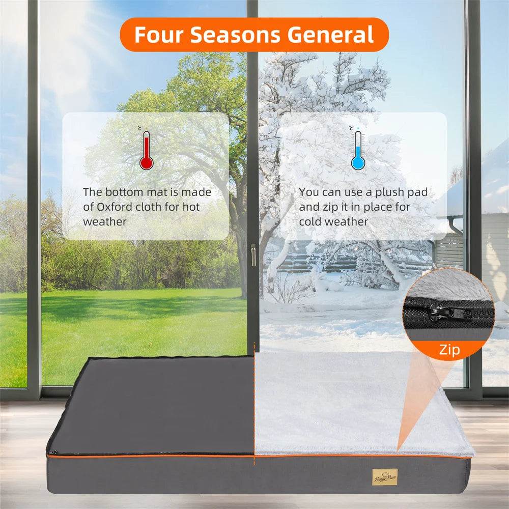 Summer & Winter Dog Beds Combination - The large dog bed sofa combined with luxury soft linter fabric cover and scratch proof oxford fabric cover together via zip, you can remove the plush cover quickly in hot summer days, In the cold winter, You can change the bed with a warm plush mat on it, Just means buy one BingoPaw bed, like you got two pet bed from us, and we sell bed covers only in our store, if you need to buy more covers to replace, it is easy to do it