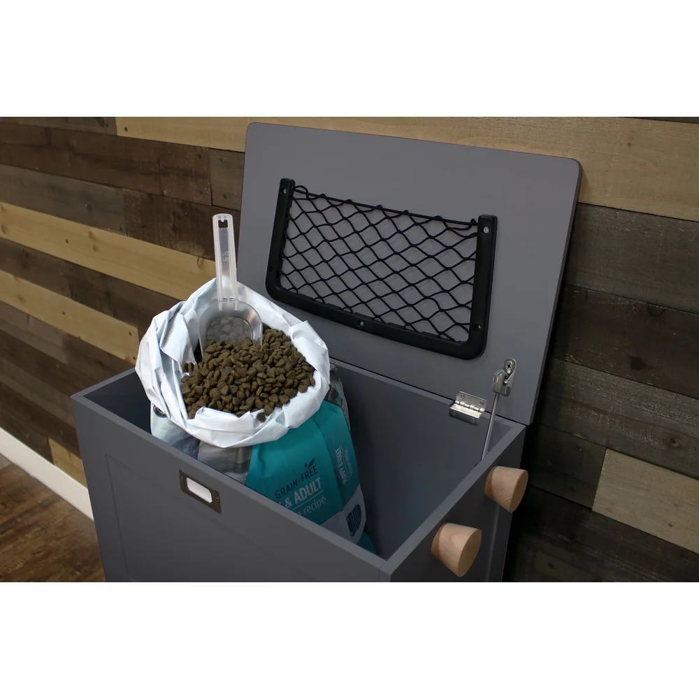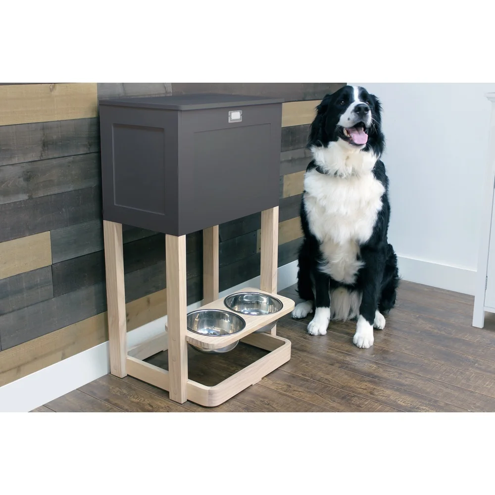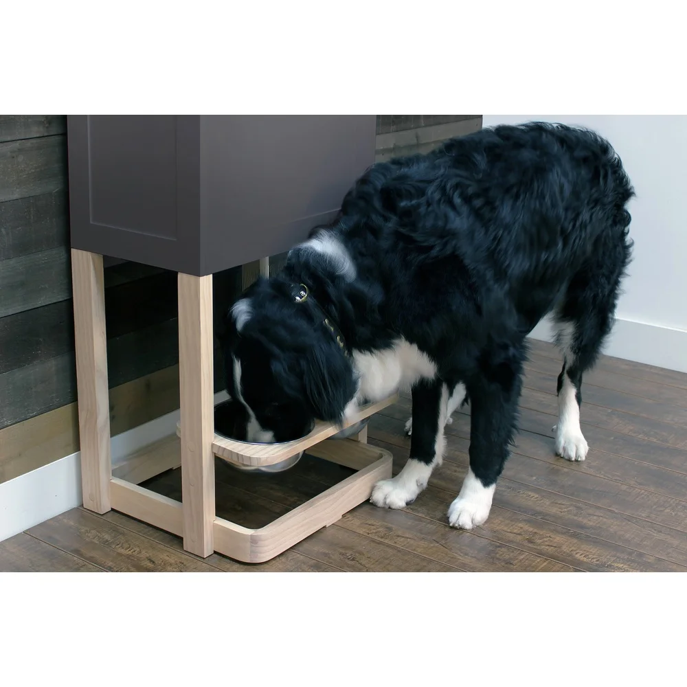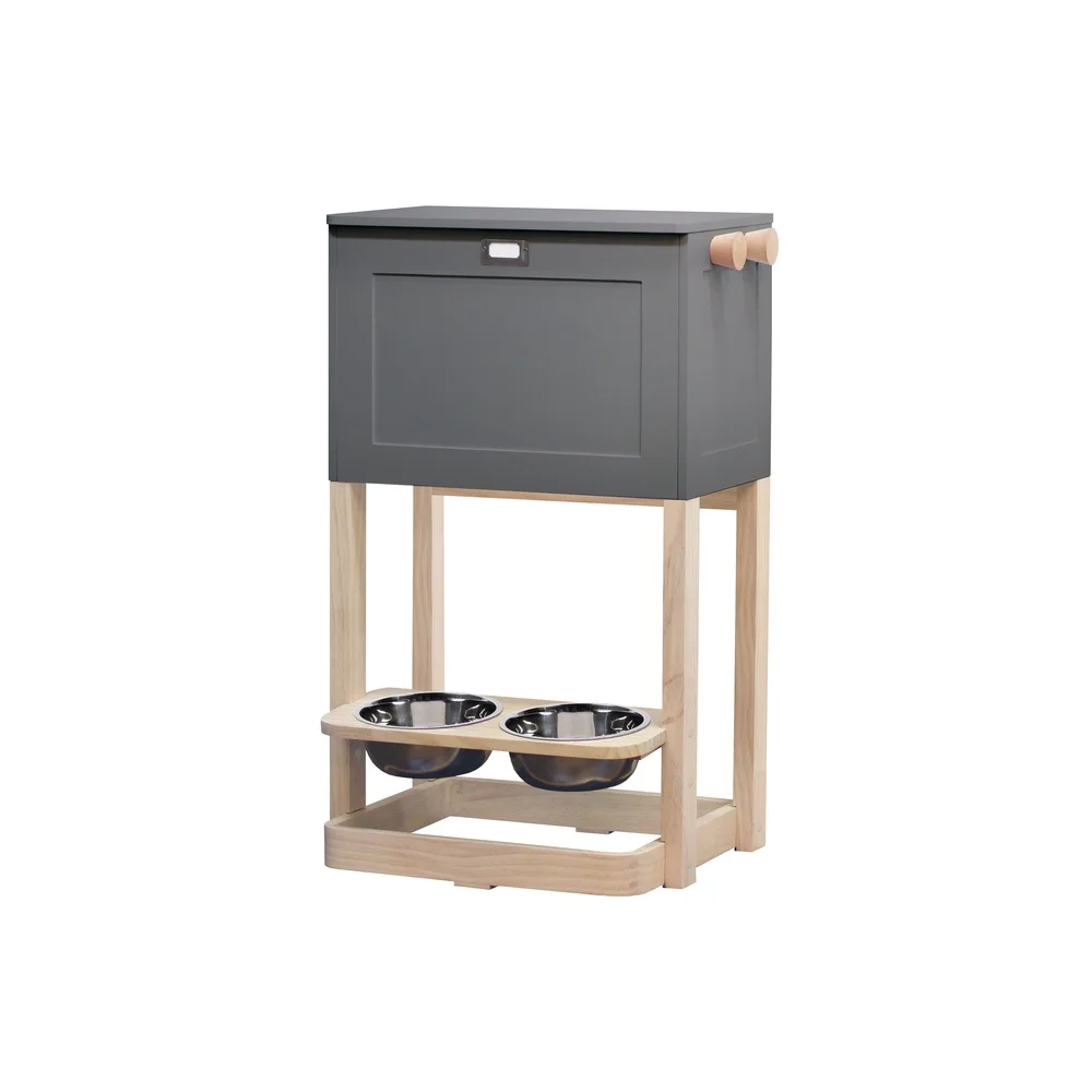 Scandinavian Pet Feeder Station with Raised Storage Non-Slip Bowls Leash Hooks Adjustable Height Suitable Dogs Cats