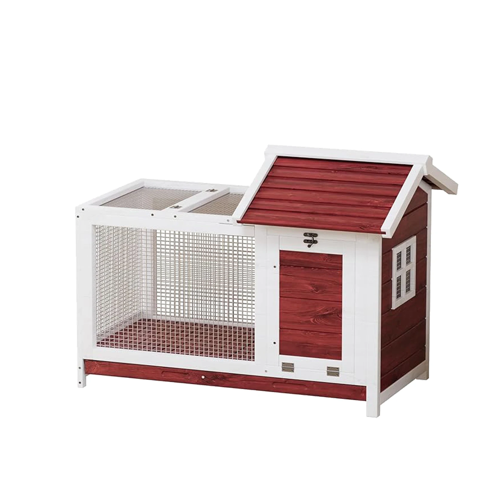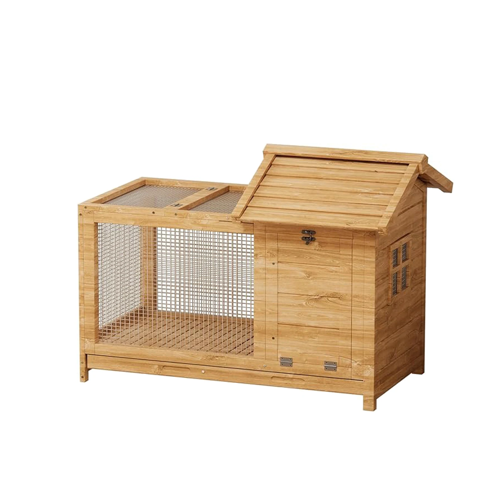 Weatherproof Wooden Rabbit Cage with Metal Frame Ramp, Removable Wire Netting & Tray, for Small Animals Coop House